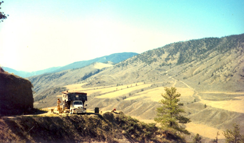 In 1986 while traveling around the north west coast Angus invited me to visit his mining claim along the Fraser River valley. He said it was remote and he didn’t exaggerate. After driving my rental car twenty miles on dusty, potholed, gravel logging roads I stopped – totally blocked by an avalanche. Angus picked me up on his motorbike and we traversed the twisty mountain track another few miles to his abode. Sat high above the deep river gorge was ‘Mona’ an ancient camper truck that he’d somehow managed to drive in before the mountain slid down permanently closing off the road. He had a fixed abode but no street address and no neighbours but the view was worth a million bucks.