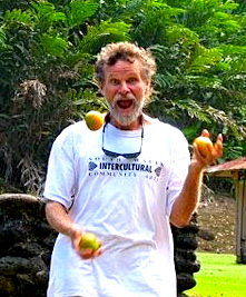 In the early ’90’s Angus made it back to Hawaii to check out Bellyacres and became a welcomed addition to our juggling community experiment. In one of our tiny bungalows in the jungle he taught a series of Reiki classes and I became certified as a level 1 student by Master Angus. Unfortunately, soon after, his seemingly isolated mining claim in B.C. became prone to helicopter raids when marijuana eradication efforts went viral in the mid ’90’s. Angus lost his illicit crop, paid some dues and lost his freedom to travel to the U.S. which ended his involvement in Bellyacres and busking stateside. How strange that thirty years later Maryjane is legal in Canada, permits are issued to Angus and thousands of other renegade growers and, while dispensaries are found on every high street, he remains banned from visiting the U.S. and Bellyacres lost a valued member.