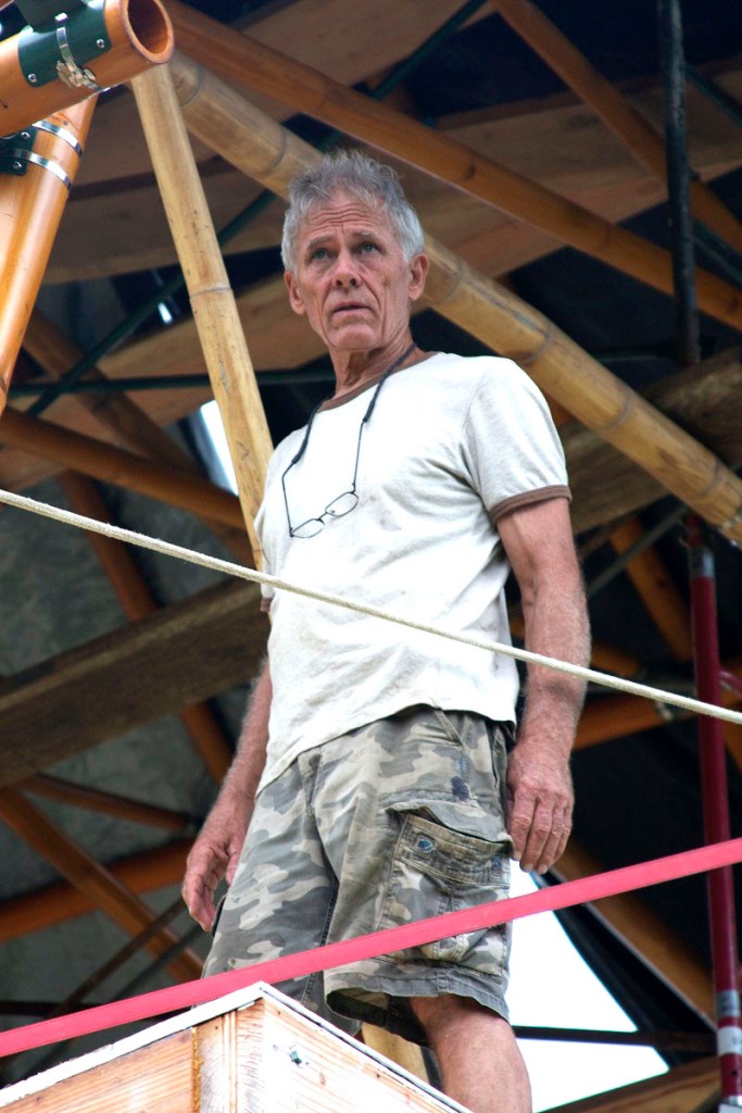 Leimana has devoted his adult life to the education and building of bamboo structures. As an award winning, designer and bamboo expert he promotes the use of bamboo as an elegant and sustainable building resource uniquely suited to Hawai’i’s economic and environmental needs. “What we’re doing,” says Leimana, with his blue eyes flashing, “is trying to create natural buildings that are sustainable all the way back to the crop. We’re trying to come up with practical and applicable solutions which we believe are location appropriate for lower Puna, since if lava comes these structures are easy to move.”