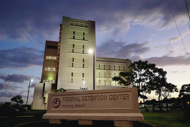 After a short visit from Dena I was then handcuffed and moved to another building and placed in a 12’ x 12’ metal cage where the cuffs were removed. I was locked up with a very large Micronesian man slouched on a wooden bench who just peeked at me and grunted as he kept falling in and out of sleep, snoring profusely. Lucky for me, he was a very sweet giant and talked with me once he woke up. After a couple of hours, we were both handcuffed and transported to the Federal Detention Center located nearby.