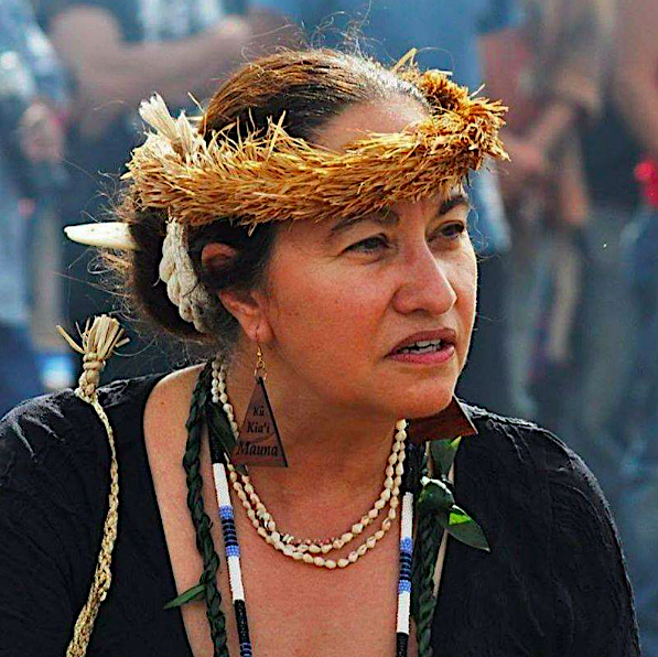 Just hours before I was forced to leave Hawaii, my home for 36 years, I was greatly honoured to be blessed in a ceremony by Native Hawaiian kapuna Pua Case – caretaker for the sacred rain rock Manaua and the original protector of Mauna Kea. From 2016 I had done my best to support the growing movement by writing grants for the Mauna Kea Education and Awareness organisation. These grants funded multiple outreach activities around Hawaii plus Pua’s attendance at the World Indigenous Conference in Canada, the Winnemem Wintu Tribe Fire Water Ceremony in California and the Manawa Whenua, Indigenous Research Conference in New Zealand where she was invited as a Keynote Speaker. It was a great honour to assist this cause and to work alongside the revered Pua Case.