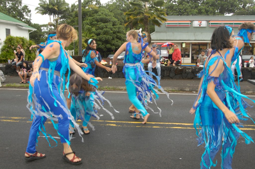 We always felt greatly appreciated by hundreds of Pahoa people who cheered for us as we slowly and chaotically careened down the long High Street and up the steep hill to enter the school parking lot – totally exhausted. Almost yearly we were awarded one or more of the prizes either, ‘best marching group’, ‘best community group’, ‘best overall’ and probably ‘best loved’ if the organizers had made this a classification.