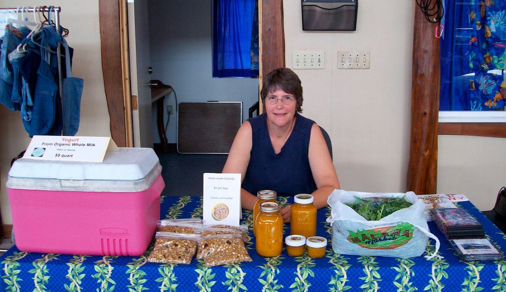 Running the market came with a few challenges. Logistically someone had to go to the bank weekly to get $100 -$400 of small denomination bills to make change. That’s a lot of ones and fives to count! We had problems enforcing our basic principle of only Big Island produce and products. Some people had very different ideas about what was ‘local’ and we repeatedly had to say NO! If vendors tried selling items on EBT that did not qualify we had to constrain them so we didn’t loose the privilege. Dealing with certain dog owners was a constant issue with everyone claiming theirs was a ‘service animal!’ Jenna had to attend court a couple of times to testify in a dispute between Pothead Soup Kathy and Angela and Elena (who also sold prepared food).  And then we worried about the Health Inspector showing up and trying to enforce mainstream rules on our alternative style renegade vendors. It was never a cake walk!