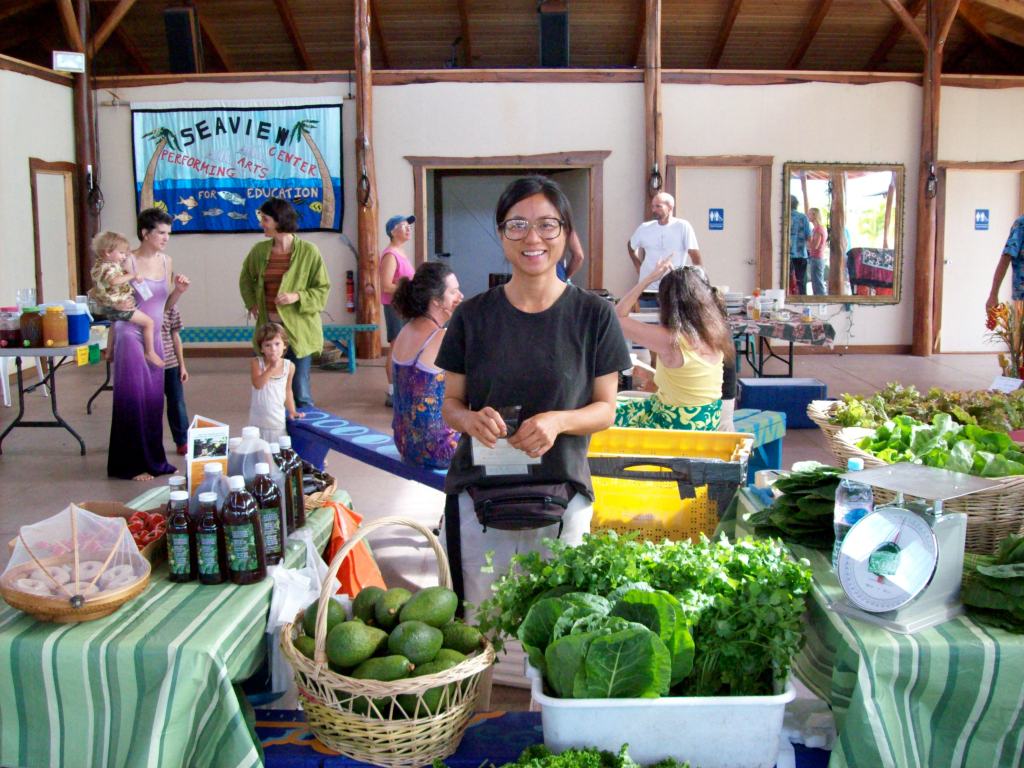 Our first market manager was Jenna but after it got more busy we recruited Kelly Nafie. In 2010, she wrote the Farmers Market Promotion Program (USDA) grant that got us funding to start up EBT.  We did over $50,000 in EBT sales the first year we had it and were the only market on the island other than Hilo that accepted EBT.  Kelly later wrote another grant to get us the commercial kitchen trailer, expand the vendor space by pouring concrete on the south side and tarps to cover it, get more tables and chairs, etc.