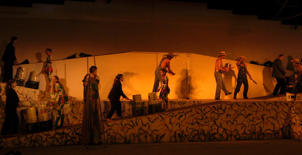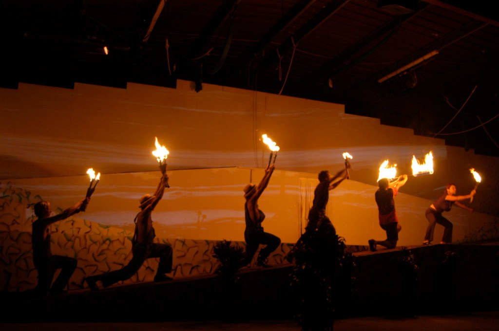 The plot followed the volcanic creation of the island with the evolution of flora and fauna especially the indigenous Ohia tree. After fifteen hundred years of native Hawaiians living in harmony with nature we saw invasions of colonisers, land exploiters and property developers who brought other invasive species and threatened the future ecological balance. The intention was to raise consciousness about dangers facing our land with an essential message about the need to help ‘malama’ it always.