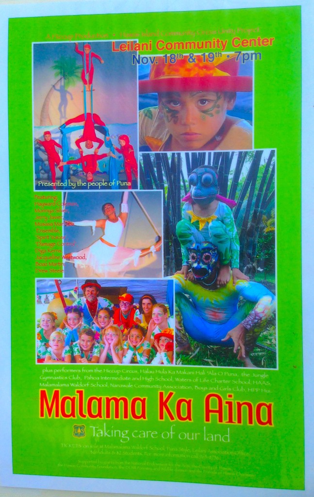 Several of our HICCUP performers also started a new community dance troupe that met weekly to train for our Malama shows and other community events. Malamalama Waldorf School started a circus arts summer camp program run by our own Michele Marzulla and presented a performance organised by HICCUP alumni. Puna started bustling with arts programs.