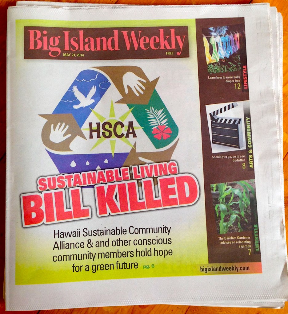 In April 2014, thanks to the lengthy, tiring, and well-fought campaign waged by our H.S.C.A. board and membership, the bill passed—almost unanimously—through all of the required committees in the State House and the State Senate. At the last of the committee hearings, there were 94 support testimonies and two comment-only testimonies, with seven of the eight opposing testimonies coming from the ‘Puna Coastal Alliance.’ We were highly jubilant and excited at the prospect, not only of having the first legislation of its kind in the country, but mostly at the thought that it would enable all ecovillages and sustainable communities in Hawai’i a chance to become legal without compromise.
